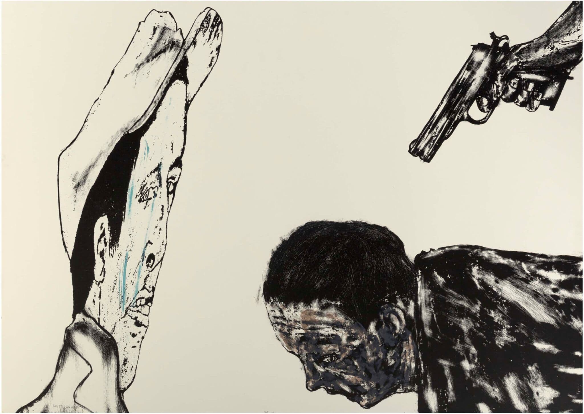 Leon Albert Golub, “White Squad” (1987) Lithograph in colors on paper. 29.5″ x 42″.