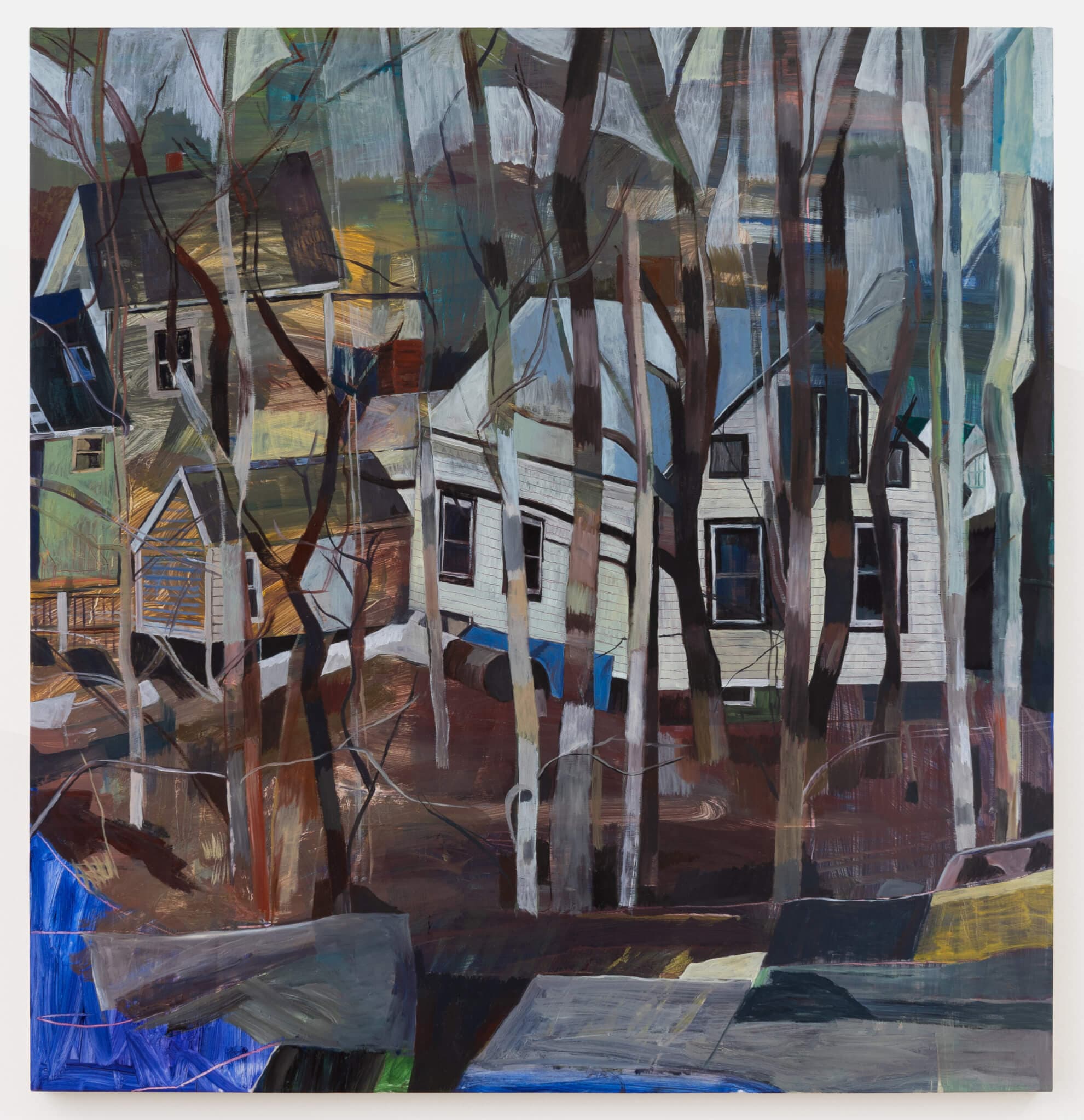 Jay Stern, Exposed Fall House, 2024. Oil on canvas, 29” x 28”. Photo courtesy of the artist and Grant Wahlquist Gallery, Maine.